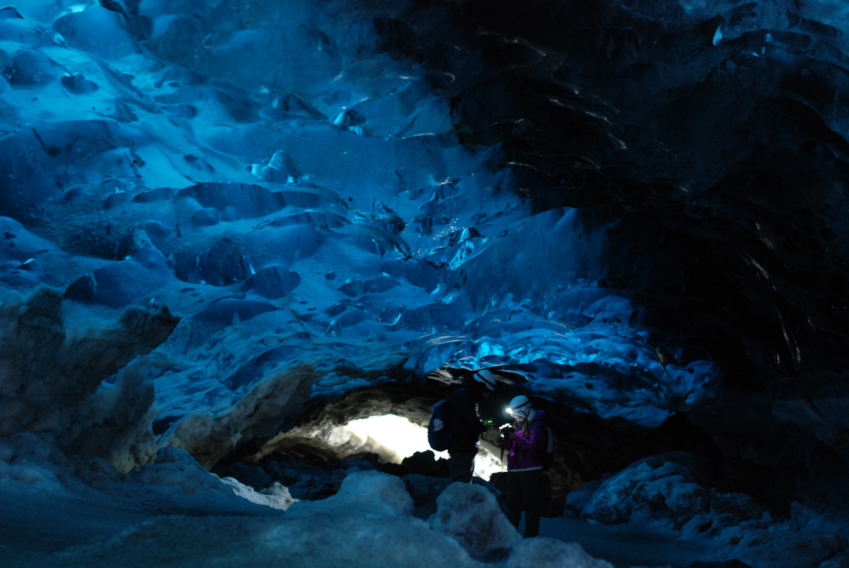 Eine Eishöle unter einem Gletscher.